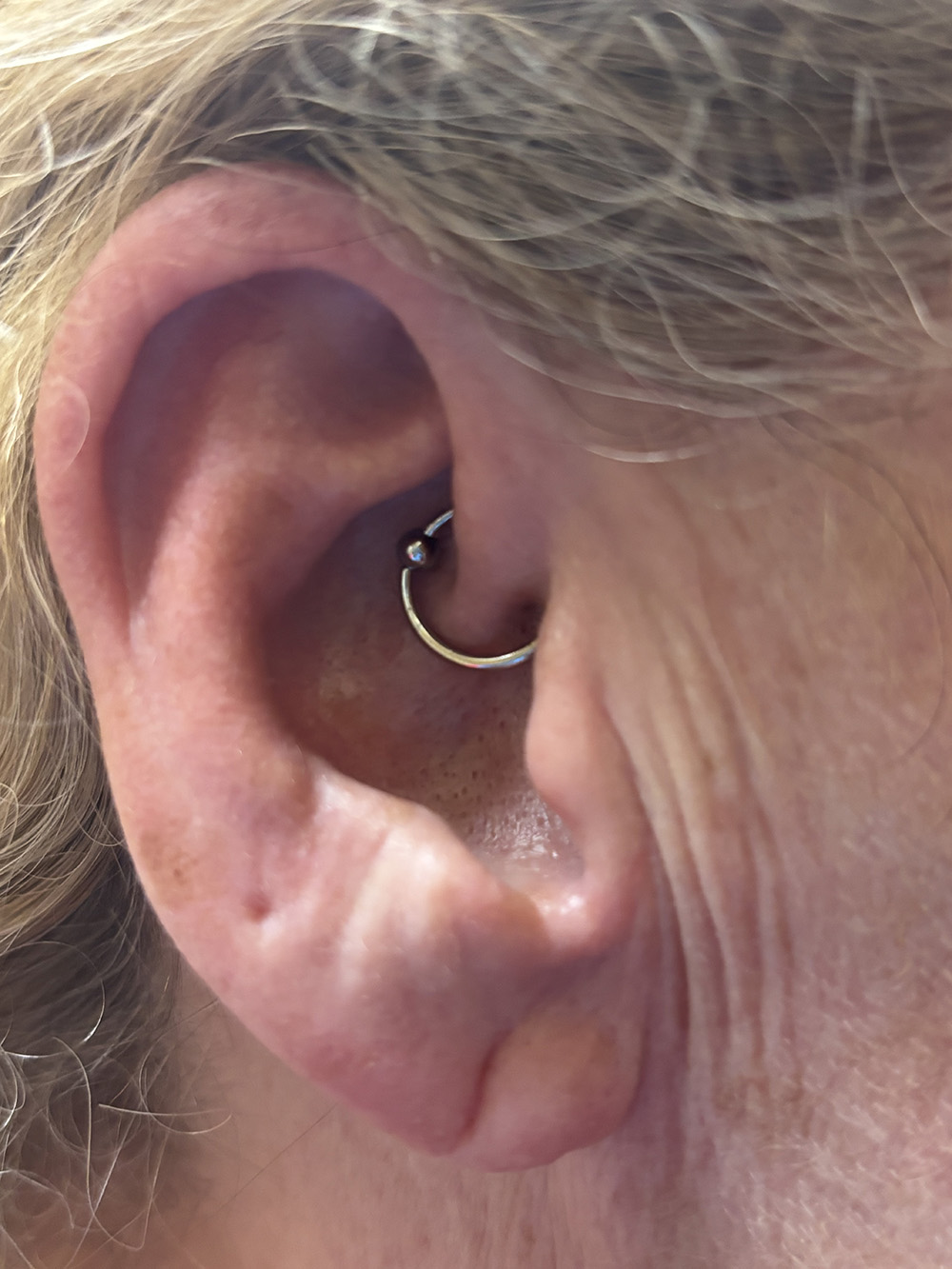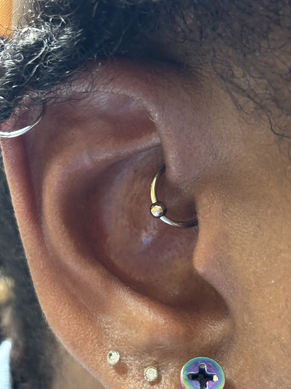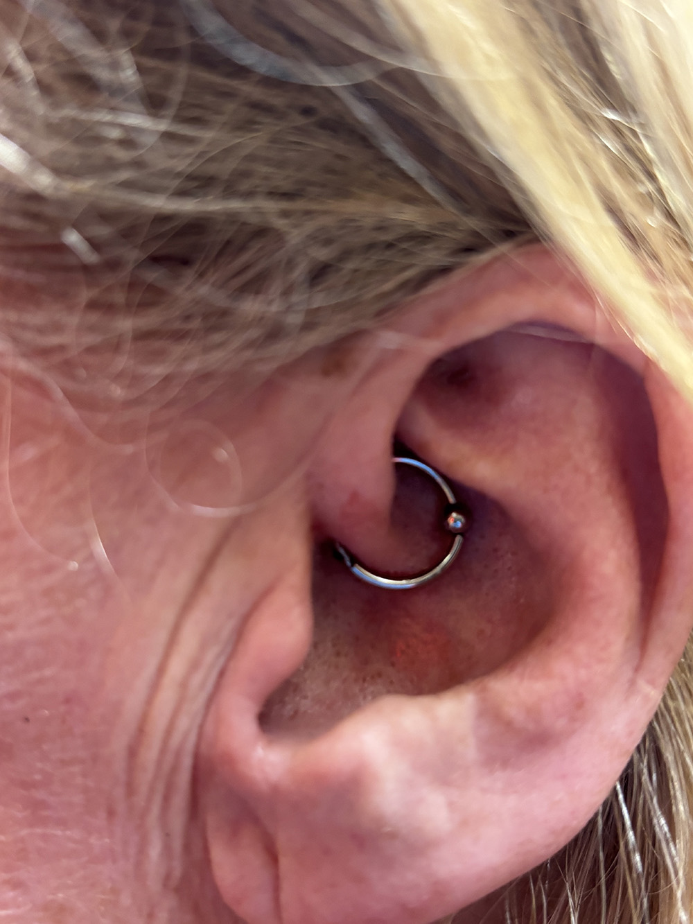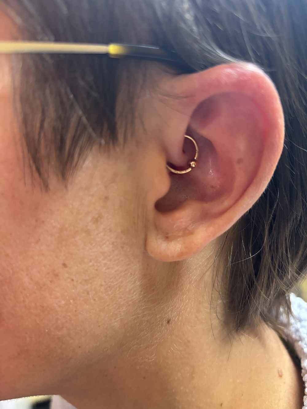 | Ear piercing in San Diego by Body Art Salon. Call for an appointment! Daith Piercings are known for helping with Migraines! |